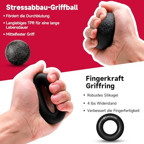 FitBeast Handtrainer Fingertrainer, Griffkraft Trainer Trainingsset – 5er-Pack, Verstellbarer Grip Trainer, Finger Trainingsgerät, Handgelenk Trainer, Trainingsring & Stressabbau-Griffkugel