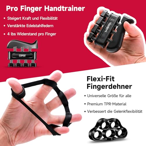 𝗛𝗔𝗡𝗗𝗧𝗥𝗔𝗜𝗡𝗘𝗥 𝗭𝗨𝗥 𝗞𝗥𝗔𝗙𝗧𝗦𝗧𝗘𝗜𝗚𝗘𝗥𝗨𝗡𝗚 — Enthält einen verstellbaren Handtrainer zur Steigerung der Kraft, ein Finger Trainingsgerät, ein Widerstandskettenband für den Fingerstretcher, einen Fingertrainer zur Steigerung der Handkraft, einen Stressabbau-Griffball. Hilft, Ihre Hand, Finger, Handgelenk, Ellbogen und Unterarme zu stärken und zu trainieren.