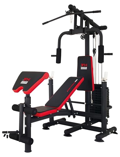 Hansson Sports Universal Kraftstation Hantelbank Multifunktion mit Hantelablage Latzug Butterfly Beinstrecker Beinbeuger 65kg Gewichten klappbar