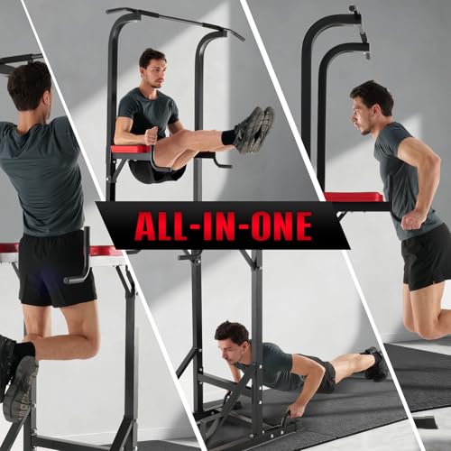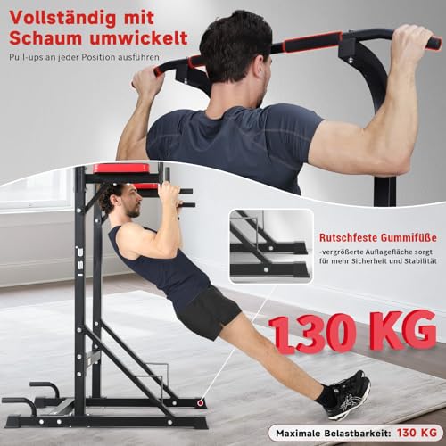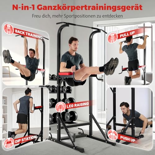Multifunktion:Power Tower, auch Römischer Stuhl, Dip Station, Pull-Up Station, Chin-up Bar oder Klimmzugstange genannt, ist ein multifunktionales Trainingsgerät (mindestens 5 in 1). Ideal für Klimmzüge, Bauchmuskel-, Rücken- und Trizeps-Übungen, auch für Liegestütze, Sit-Ups und Dips.