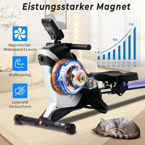 ISE Rudergerät für Zuhause,Magnetisches Rudergeräte mit APP & LCD-Display & 8 Widerstandsstufen, Leises Magnetisches Rudergerät,Leises Heimrudergerät für Cardio-Training,Indoor-Gerät für das Home-Gym