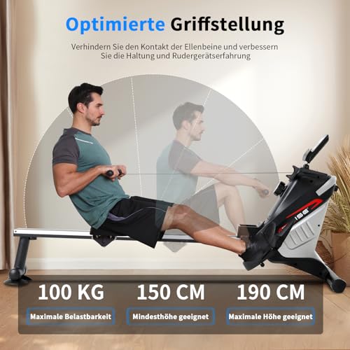 ⭐UMFASSENDE FUNKTIONEN: Sportgeräte zuhause rudergerät&ruder für zuhause sportgeräte&rudergerät klappbar platzsparend, Es bietet ein so umfassendes Ganzkörpertraining wie kein anderes Fitnessgerät.Kraft,Ausdauer,Beweglichkeir,Koordination -alle wichtigen Fitness-Komponenten werden in nur einer Traningsform traniert.Dabei werden über 80% der Köpermuskulatur beansprucht mit rudergeräte für zu hause. Rudergeräte für zu hause160(L)*54(B)*70(H)cm, Geeignet für die Größe von 155cm-190cm.