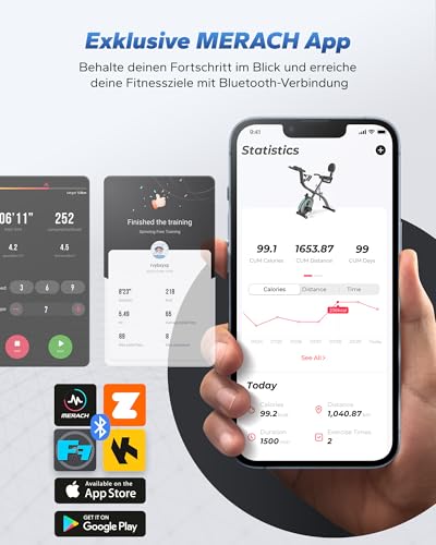 [APP-Datenaufzeichnung]: Steigern Sie Ihr Fitnessniveau mit dem klappbaren Heimtrainer und der kostenlosen MERACH App-Unterstützung. Mit Bluetooth-Verbindung und Echtzeit-Aufzeichnung Ihrer Trainingsdaten bleiben Sie motiviert und erreichen Ihre Fitnessziele wie nie zuvor. Zudem kompatibel mit Kinomap und bietet Ihnen noch mehr Trainingsmöglichkeiten.