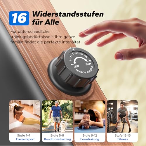 Leistungsstarkes Magnetisches Schwungrad: Bietet einen maximalen Widerstand von 40 kg mit 16 einstellbaren Stufen, um verschiedene Trainingsbedürfnisse zu erfüllen. Die Wahl der richtigen Widerstandsstufe steigert die Trainingseffizienz und hilft, verletzungsbedingten Beschwerden vorzubeugen.