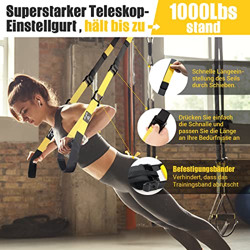 Schlingentrainer, Sling trainer für ein Ganzkörpertraining, Schlingentrainer für zuhause mit Großem Griff Türankerbefestigung Tragtasche, Übungsanleitung for Homegym